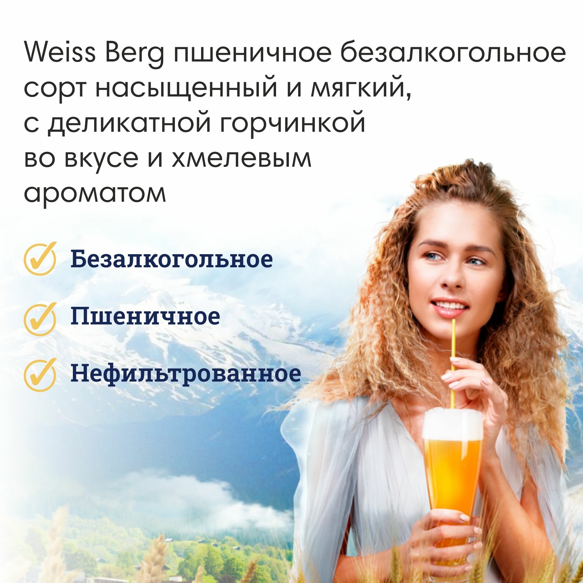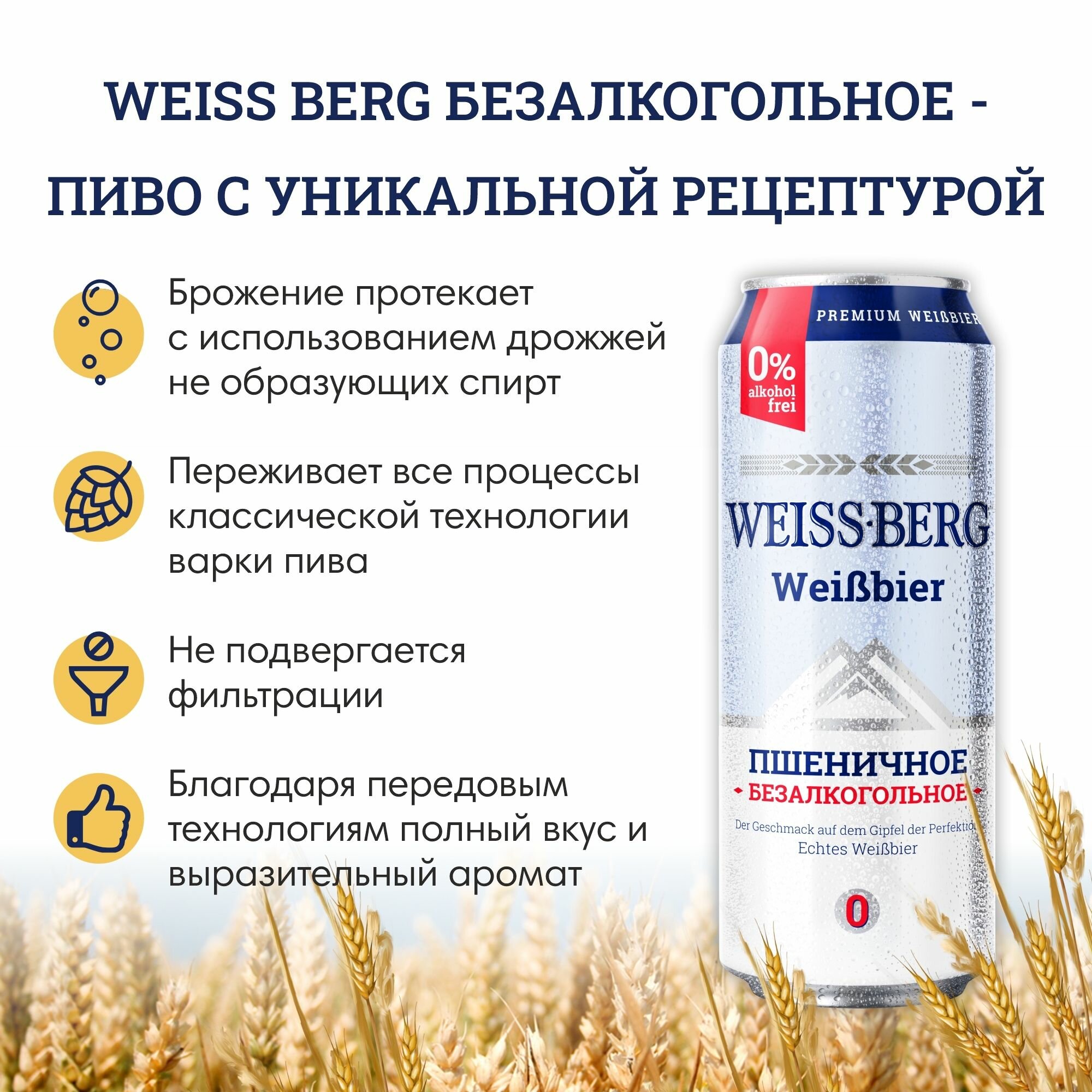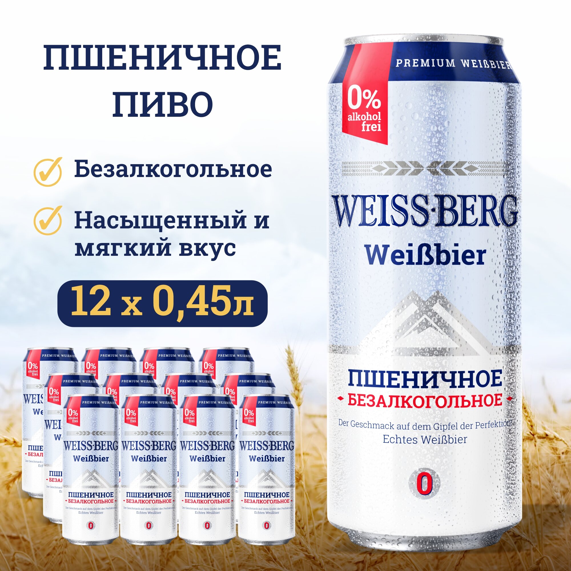 Пиво безалкогольное "Weissberg" 0,45л х 12шт, пшеничное информация: