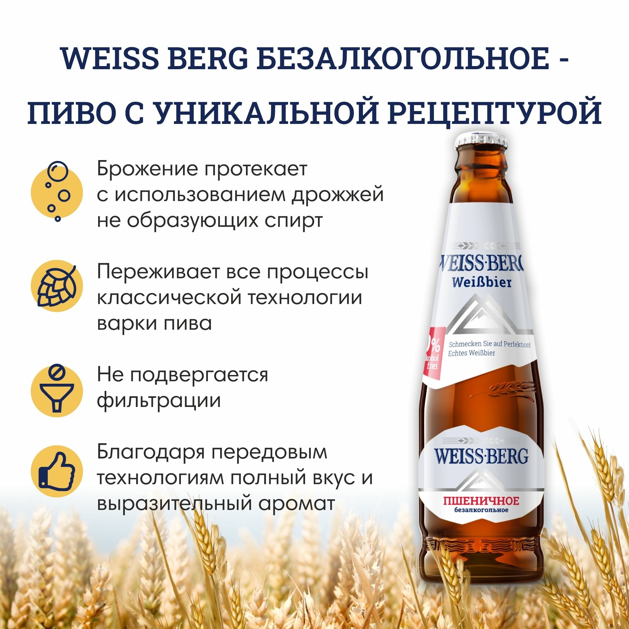 Пиво "Вайсберг" пшеничное безалкогольное, 0,44 л, упаковка 12 штук информация: