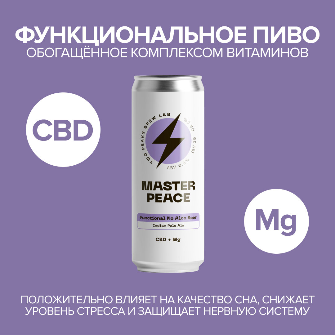 Безалкогольное функциональное пиво Two peaks / Master Peace с CBD, 330 мл. 6 шт информация: