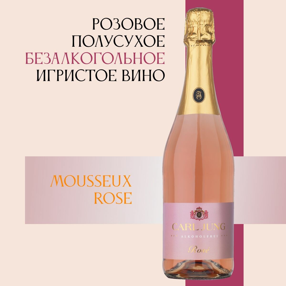 Отзывы на Вино игристое безалкогольное Carl Jung (Карл Юнг) MOUSSEUX ROSE (Мусё Розе) 100% шампанское натуральное белое полусухое /в подарок, Германия, 750 мл