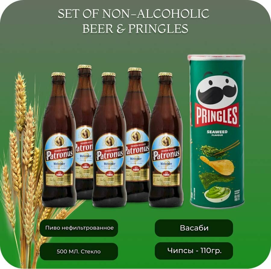 10 цен на Patronus Weissbier (Патронус Вайсбир) пиво б/а нефильтрованное , 0.5 л, 5 бут.+ в подарок чипсы принглс со вкусом Васаби и водоросли