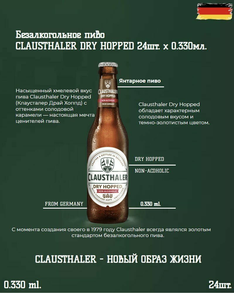 Пиво безалкогольное Clausthaler Клаусталер DRY HOPPED 8шт. 0,33 л. информация: