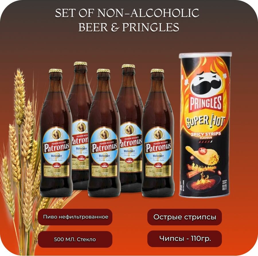 10 цен на Patronus Weissbier (Патронус Вайсбир) пиво б/а нефильтрованное , 0.5 л, 5 бут.+в подарок чипсы принглс со вкусом Острые стрипсы