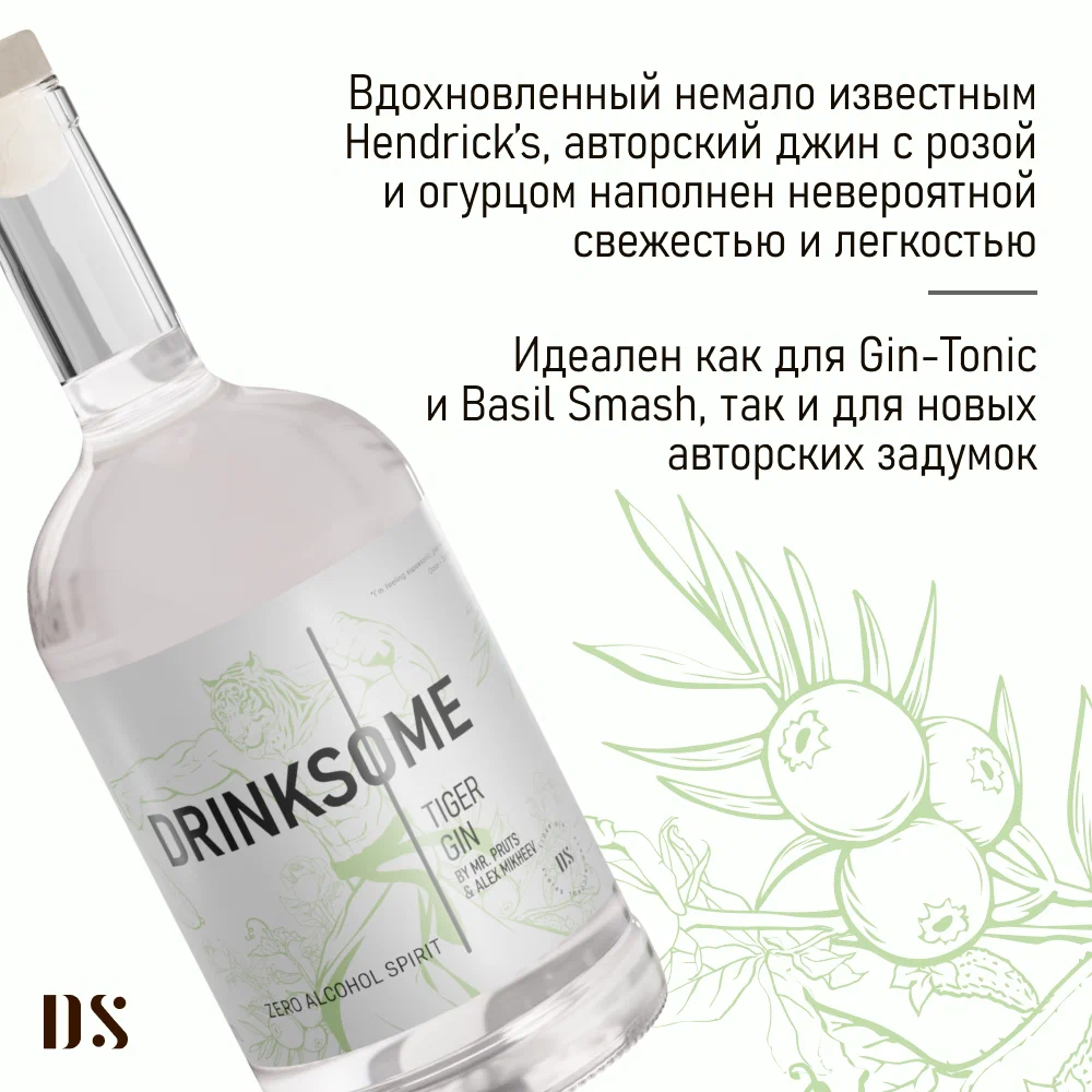 10 цен на Джин безалкогольный DRINKSOME Tiger Gin 0,7 л, алкоголь 0%