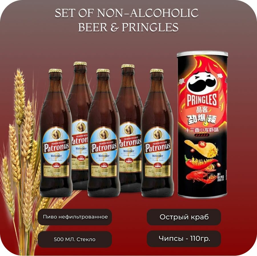 10 цен на Patronus Weissbier (Патронус Вайсбир) пиво б/а нефильтрованное , 0.5 л, 5 бут.+в подарок чипсы принглс со вкусом острый краб