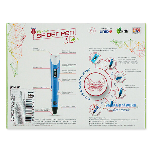 Сиреневая ручка 3D Spider Pen Plus (Спайдер Пен) информация: