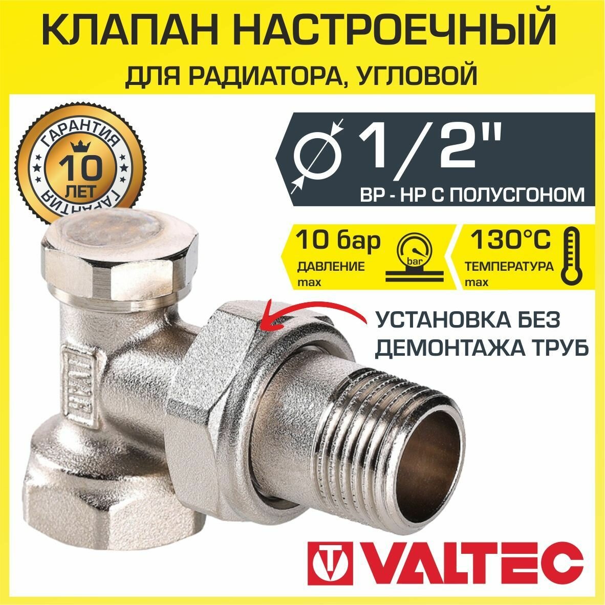 Клапан настроечный угловой 1/2" Valtec Vt.019.N.04 информация:
