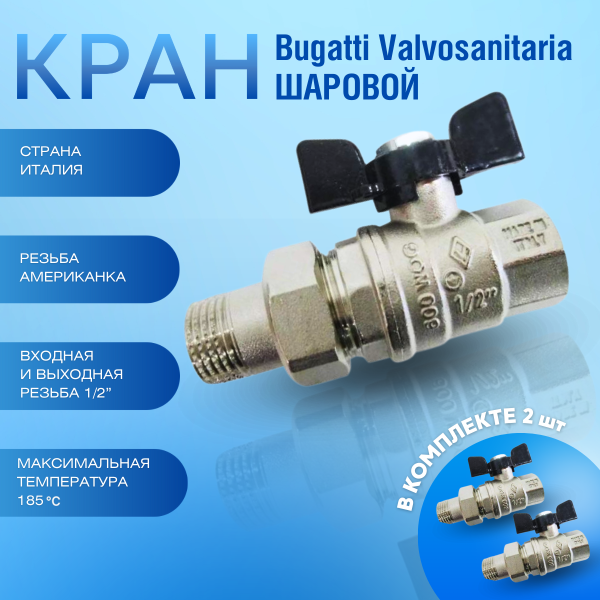 Bugatti Кран шаровый американка 1/2 ручка бабочка OREGON 322 2 штуки информация: