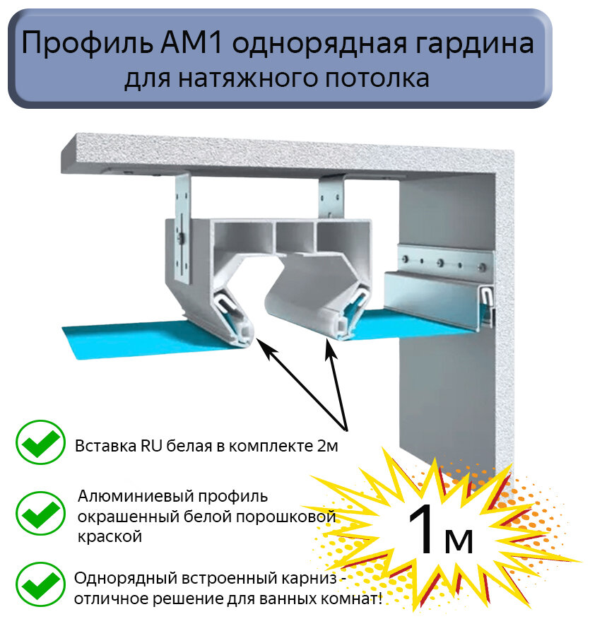 Профиль АМ1 однорядная гардина белая для натяжного потолка, 1м информация:
