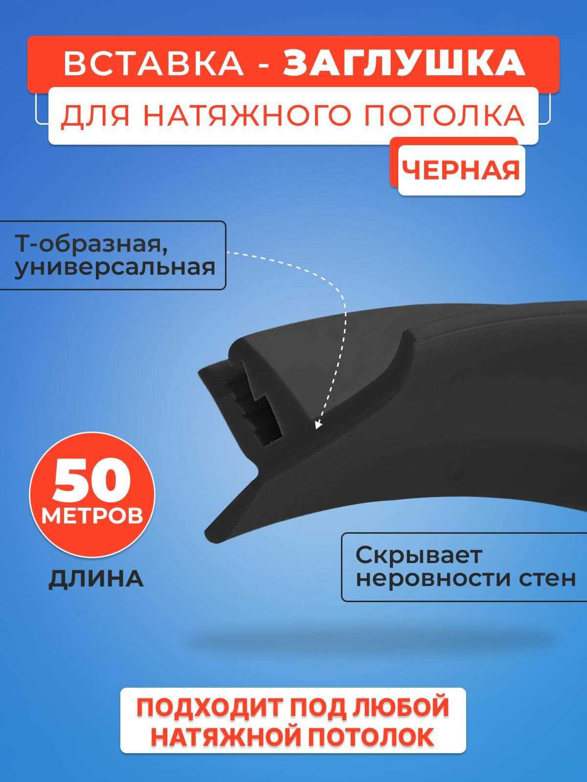 Отзывы на Вставка-заглушка черная, плинтус для натяжного потолка 50 м. моток- 1 шт.