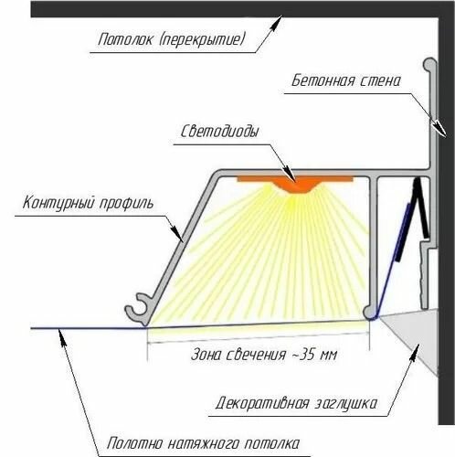 Контурный профиль алюминиевый для натяжного потолка (1 метр) информация: