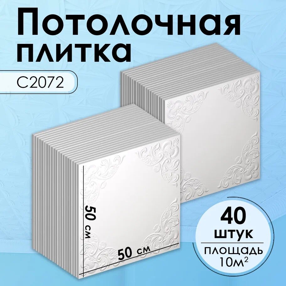 Плитка потолочная, Экструдированная, С2072 "Белый", 50x50 см, 10кв.м, 40 шт. информация: