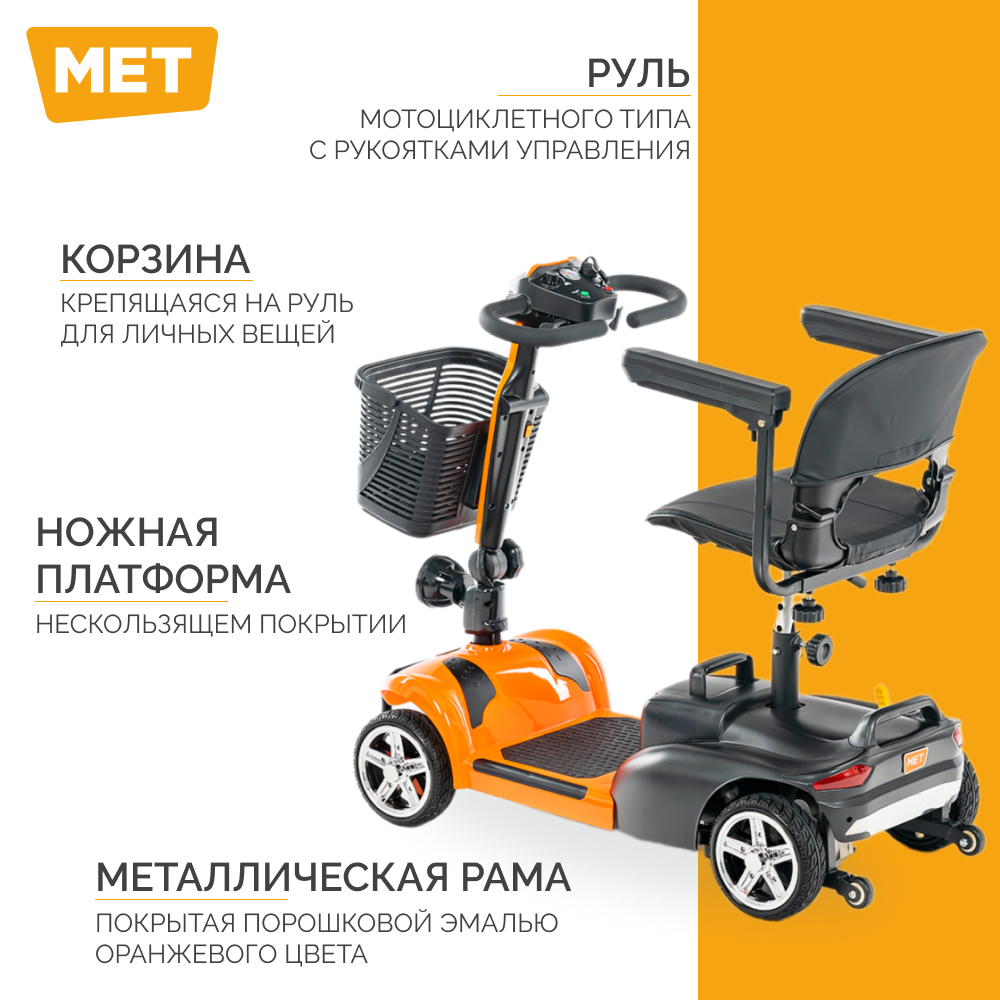 10 цен на Электрический скутер четырехколесный для инвалидов и пожилых людей MET EXPLORER 250 (Оранжевый) / Электроскутер