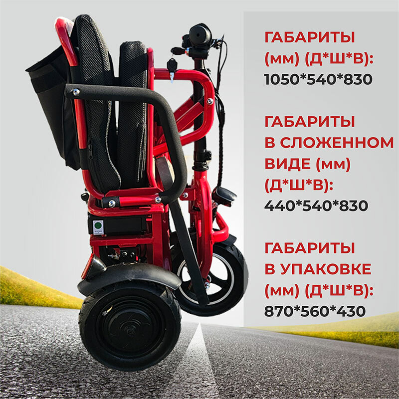 Электрический трицикл складной SPUTNIK PRO 700Вт (48В-15Ач) для взрослых, пожилых, инвалидов. Цвет красный. информация: