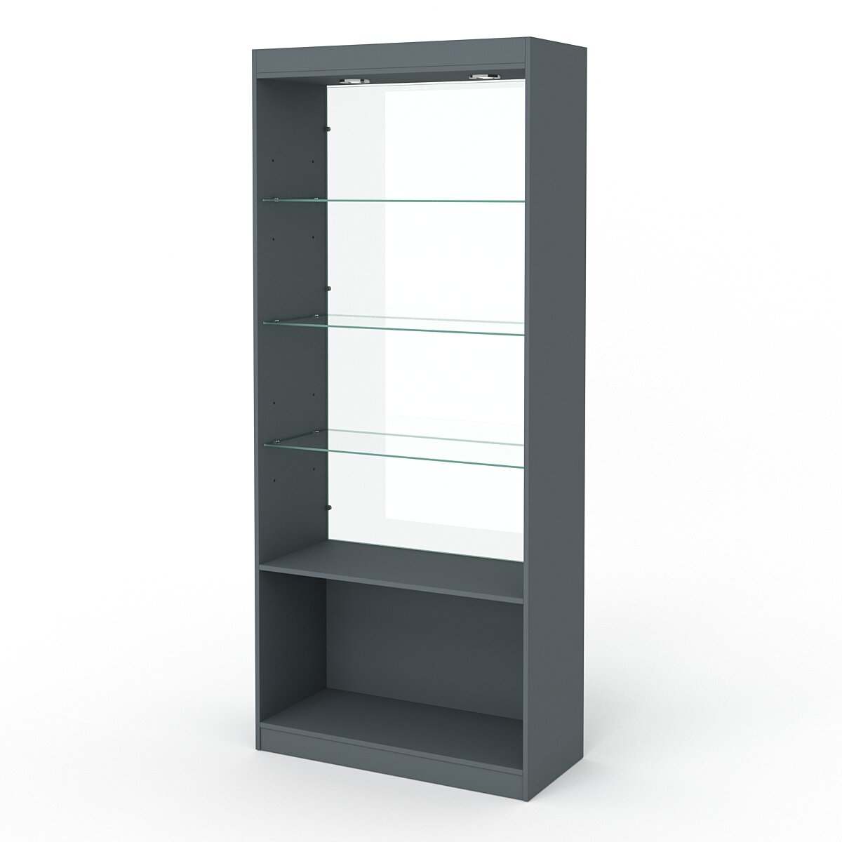 Витрина №4-1 (без дверок, фасад - стекло), Темно-Серый 90 x 40 x 210 см информация: