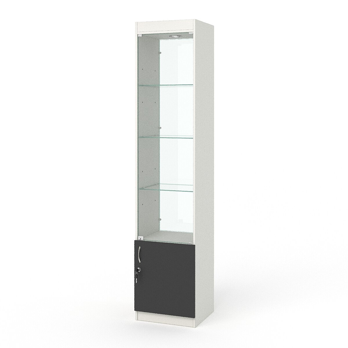 Витрина №2-2 (с дверкой, задняя стенка - стекло), Черный и Белый 45 x 42 x 210 см информация: