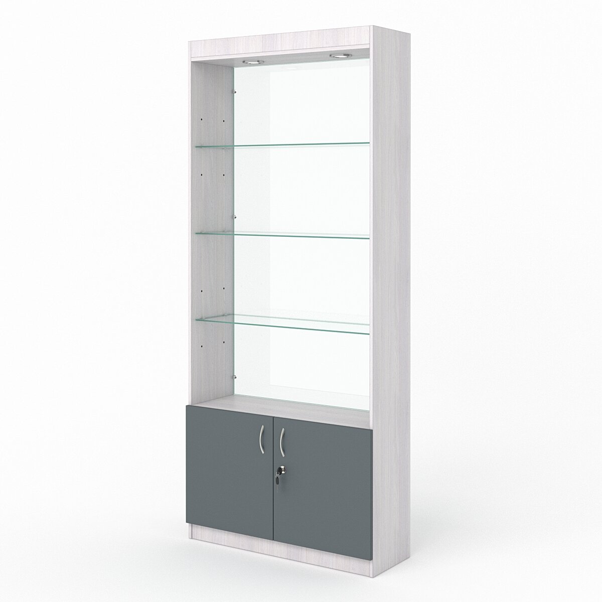 Витрина №300-2 (без дверок, задняя стенка - стекло), Ясень Анкор и Темно-Серый 90 x 30 x 210 см информация: