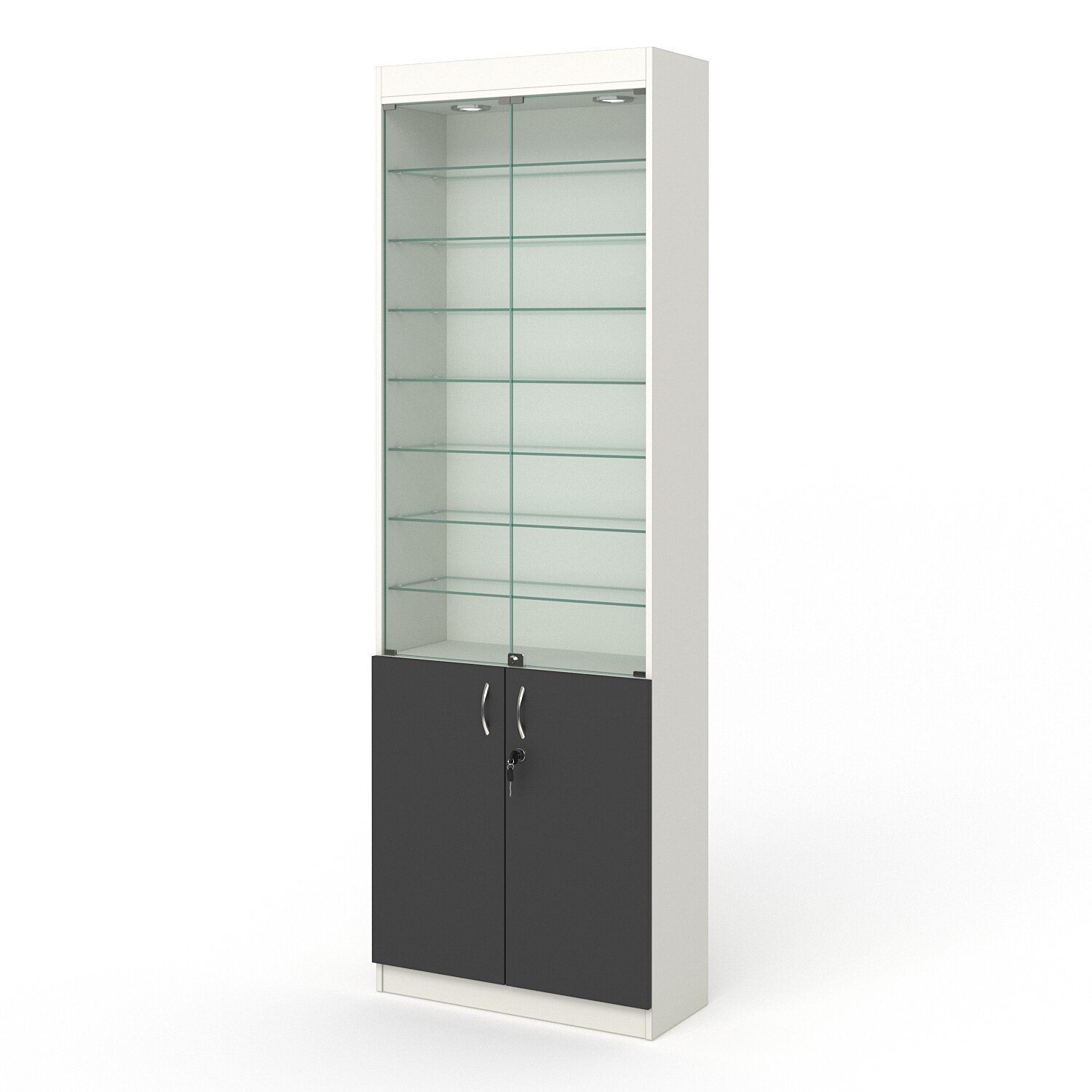 Витрина №6-1 (с дверками, задняя стенка - ДВП), Белый и Черный 70 x 30 x 210 см информация: