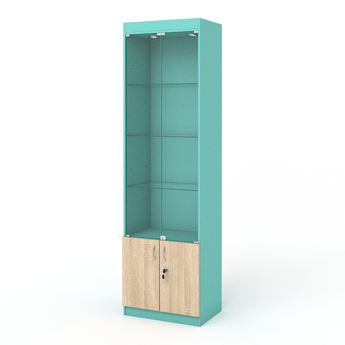 Витрина №1-1-600 (с дверками, задняя стенка - ДВП), Тиффани Аква и Дуб Сонома 60 x 42 x 210 см информация: