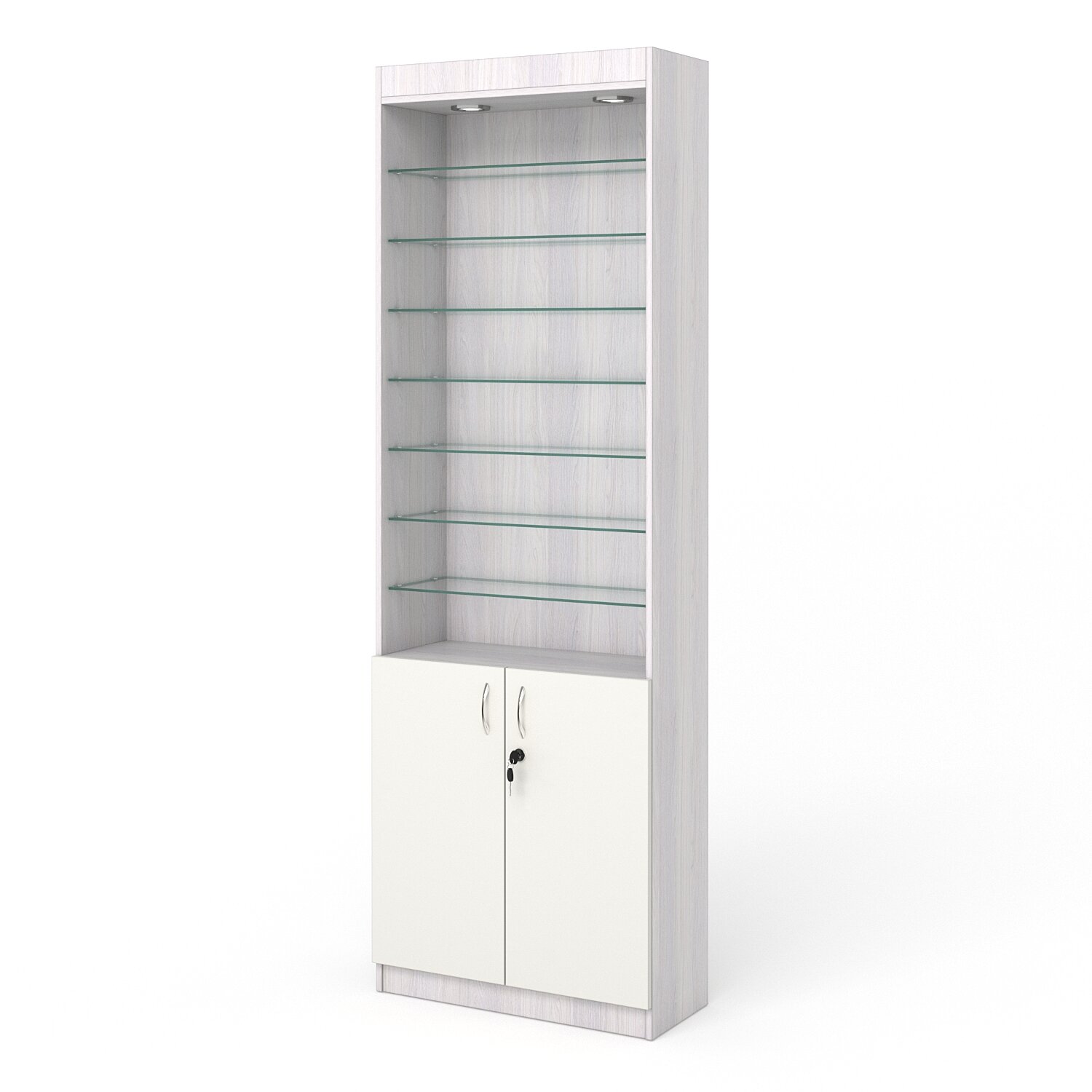Витрина №6-1 (без дверок, задняя стенка - ДВП), Ясень Анкор и Белый 70 x 30 x 210 см информация: