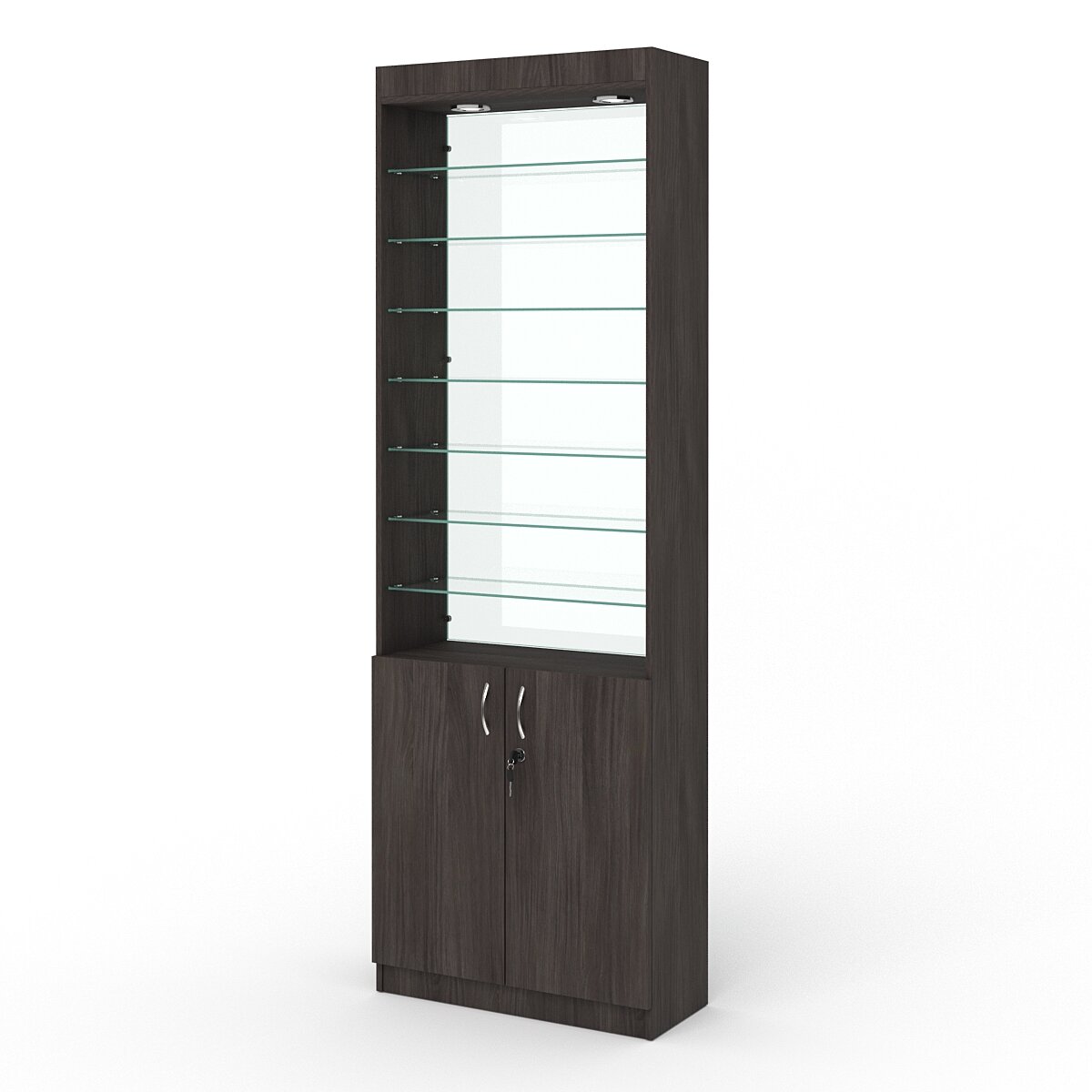 Витрина стеклянная "прима классик" №33 (с дверками, задняя стенка - стекло), Черный 90 x 30 x 209 см