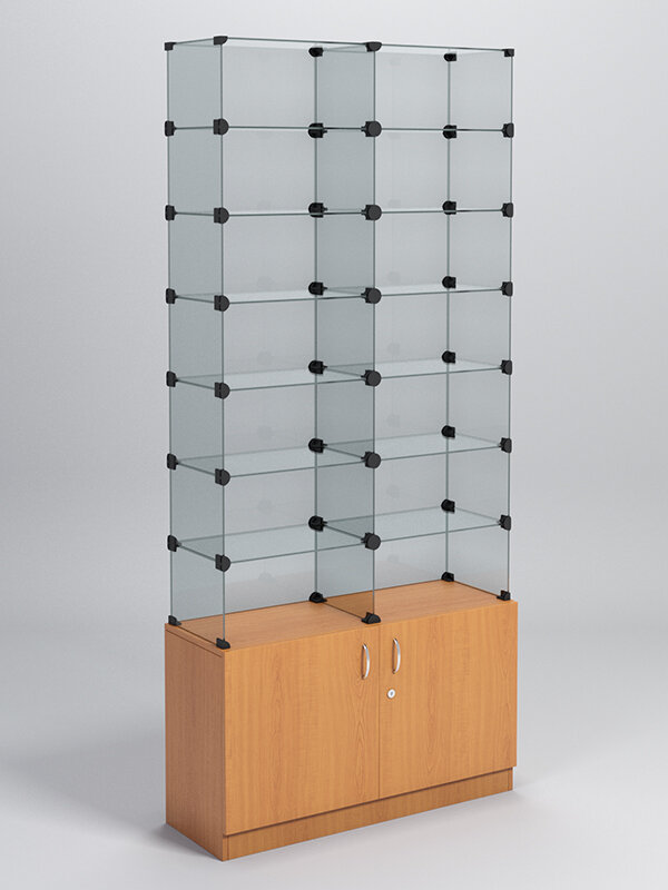 Витрина стеклянная "КУБ" №133 (без дверок, передняя стенка - стекло), Вишня 90 x 30 x 202 см информация: