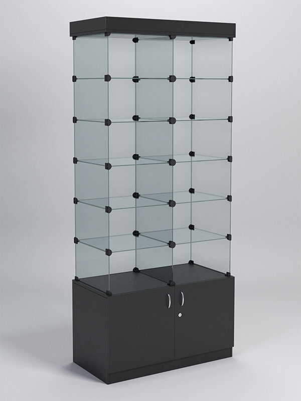 Витрина стеклянная "КУБ" №503 (без дверок, передняя стенка - стекло), Черный 90 x 47 x 210.6 см информация: