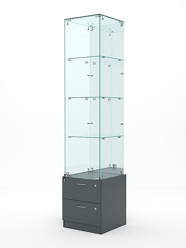 10 цен на Витрина стеклянная "хрусталь" №8 (с дверкой, задняя стенка - зеркало), Темно-Серый 45 x 45 x 202 см