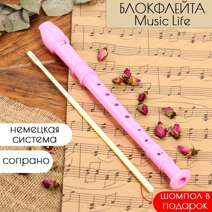 10 цен на Блокфлейта Music Life, розовая, немецкая система, сопрано, 30 см