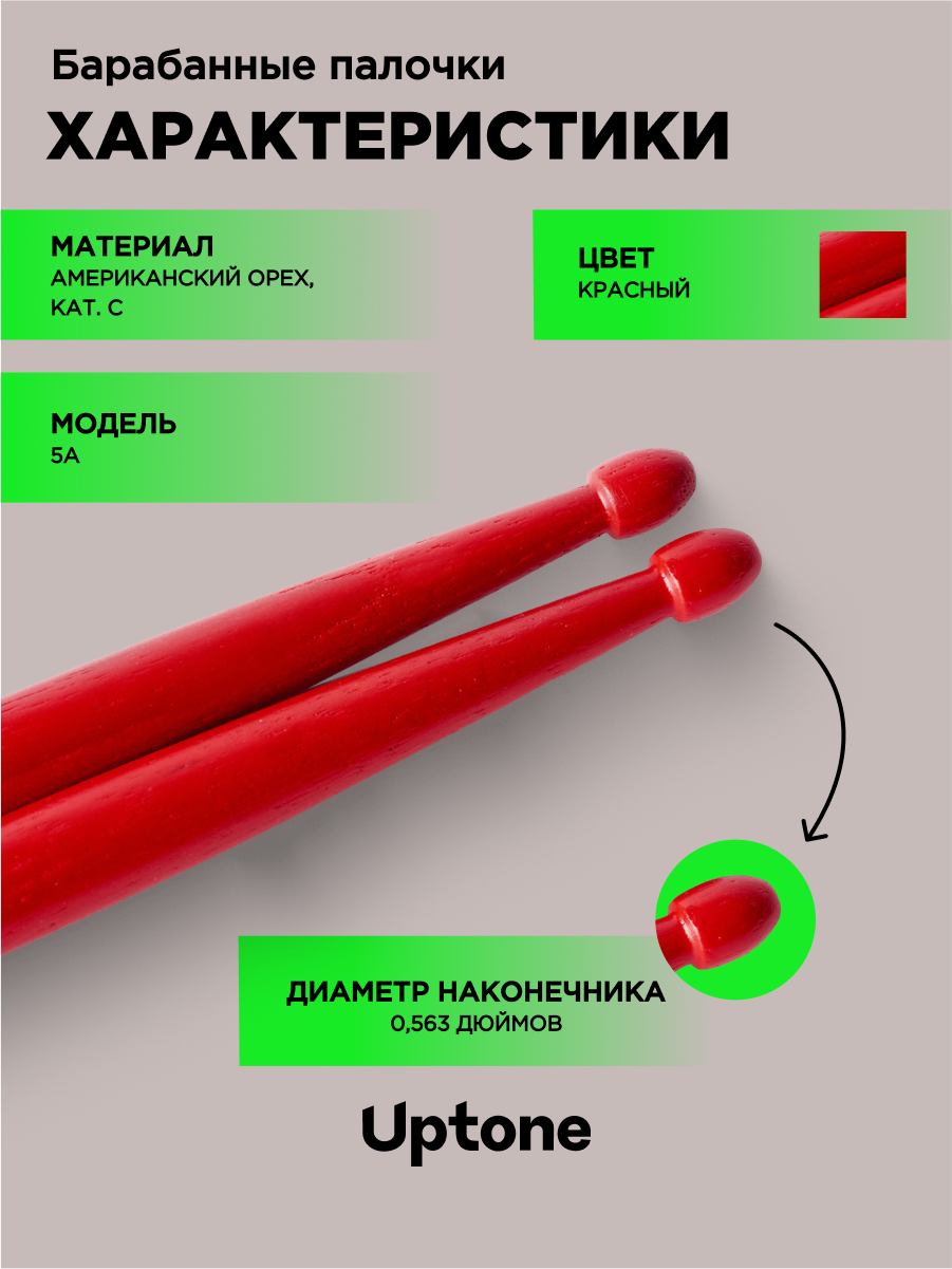 10 цен на UPTONE Hickory Standard 5A Red барабанные палочки, орех, наконечник - красный, цвет – красный
