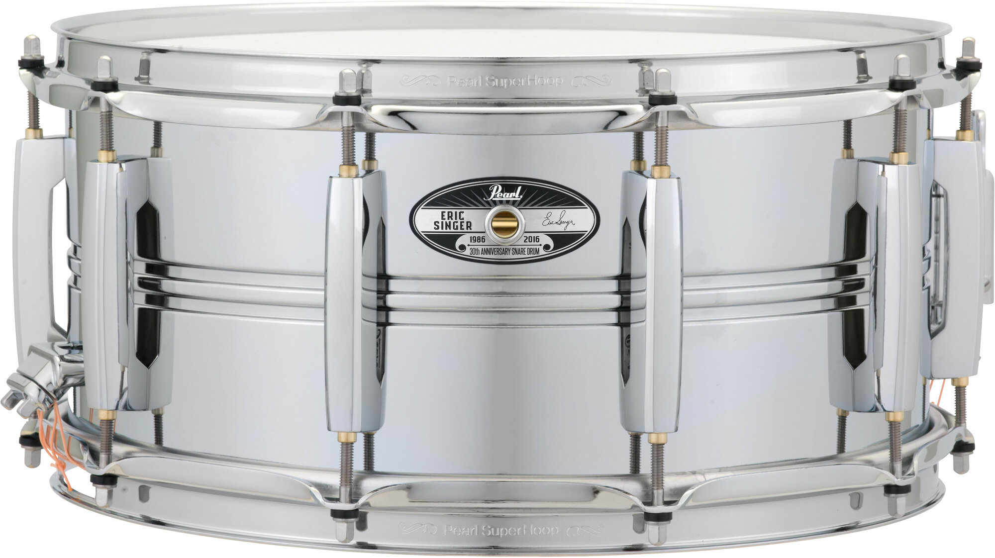 Snare drum Pearl Eric Singer 30th Anniversary ESA1465S - The 14x6.5 inch snare drum with chrome-plated brass shell named after Eric Singer from KISS is released to celebrate 30 years of collaboration информация: