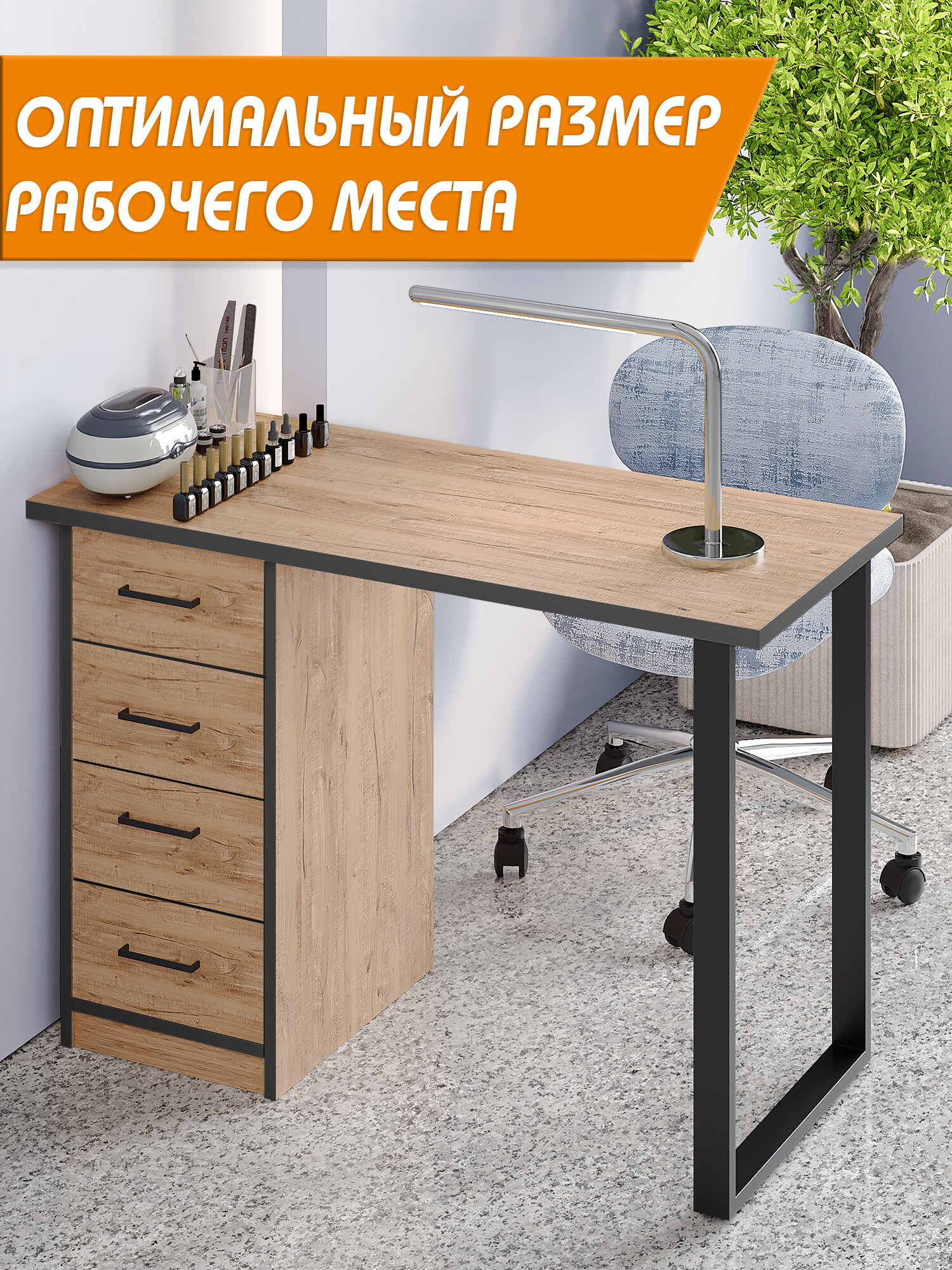 10 цен на Стол маникюрный с ящиками, цвет дуб вотан с черной кромкой