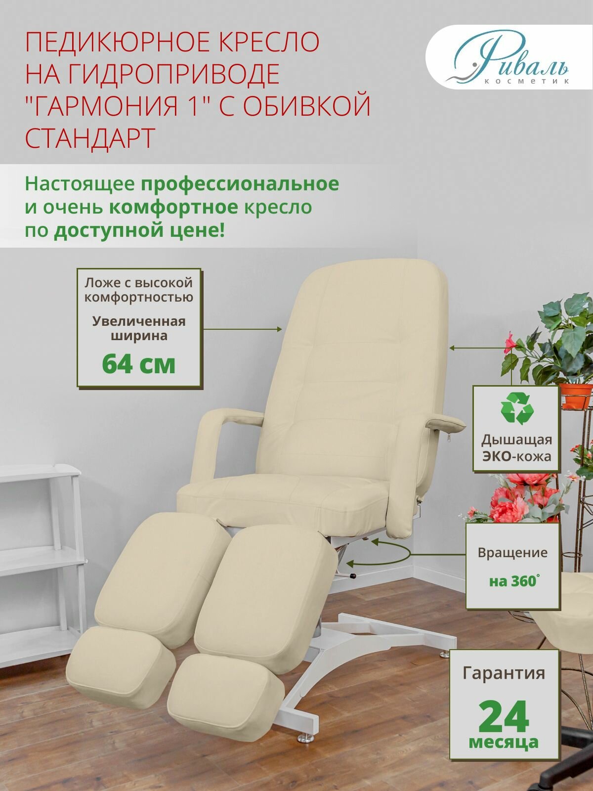 Кресло педикюрное на гидравлике "Гармония-1", Риваль, обивка бежевая стандартная/кресло для педикюра, для тату информация: