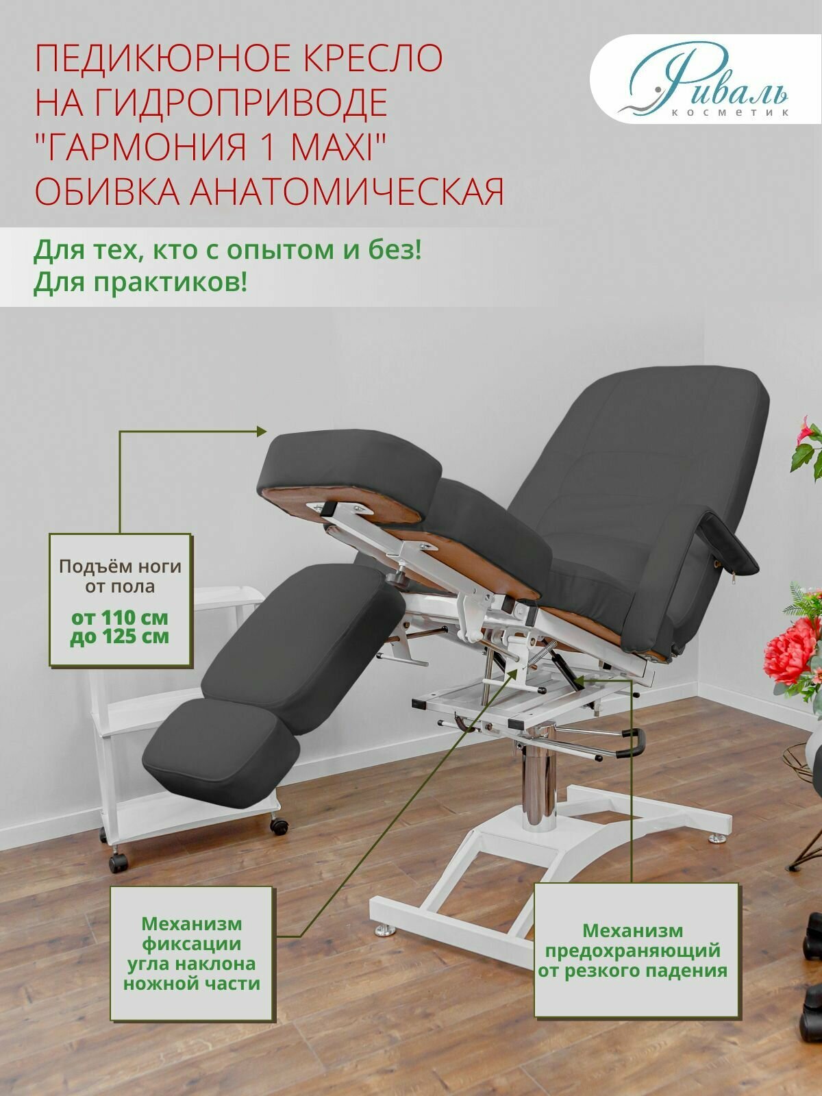 Отзывы на Кресло педикюрное серое на гидравлике "Гармония макси", обивка Анатомическая/для педикюра, с регулировкой высоты, поворотное