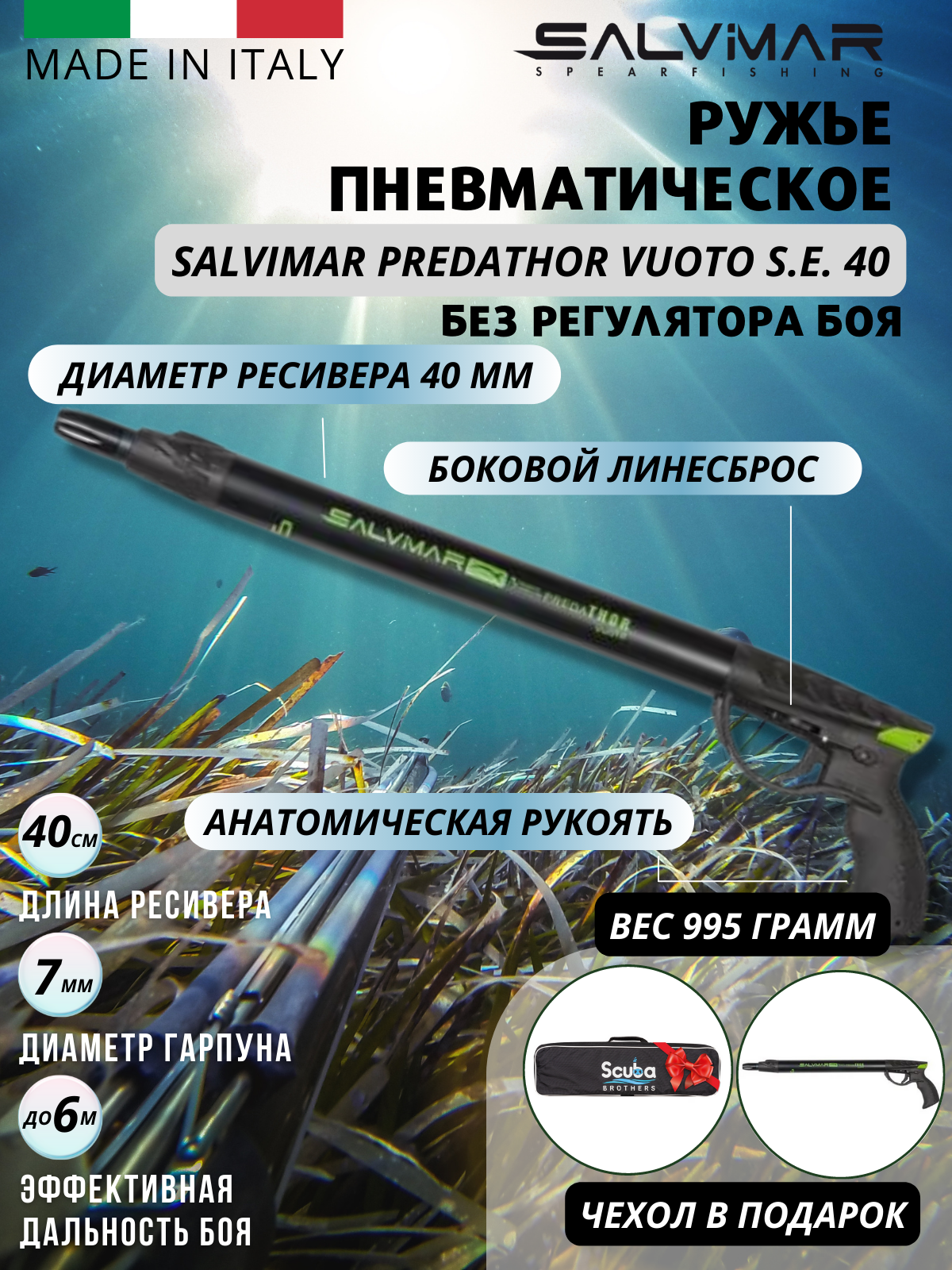Ружье для подводной охоты в пресной воде пневмовакуумное Salvimar Predathor Vuoto с регулятором 40 см информация: