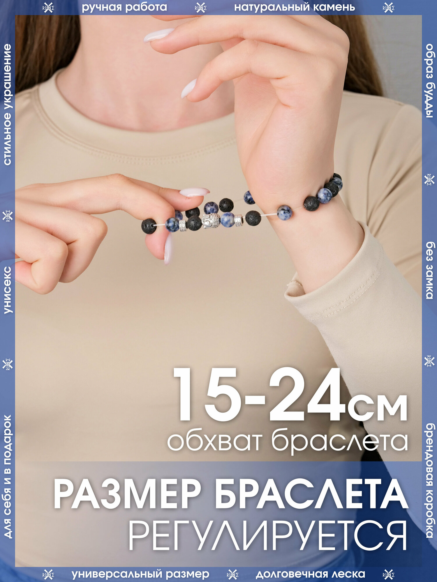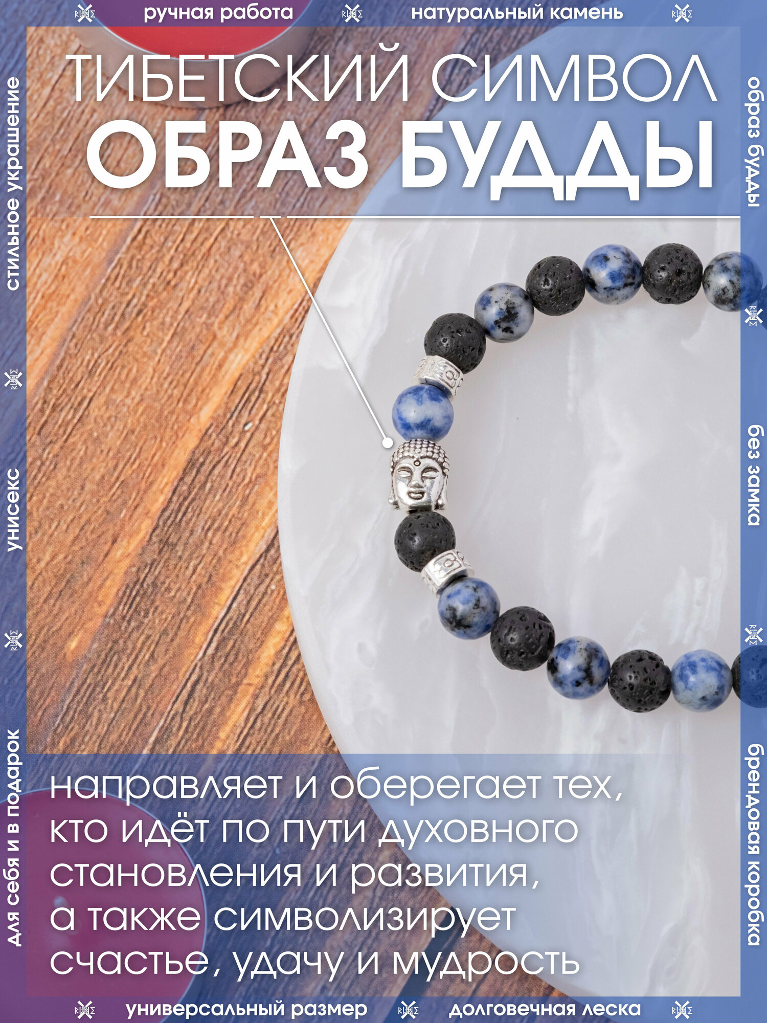 Защитный тибетский браслет Будда из натуральных камней Лава и Содалит/Охранный оберег-талисман из бусин на руку черный-синий/Бижутерия информация: