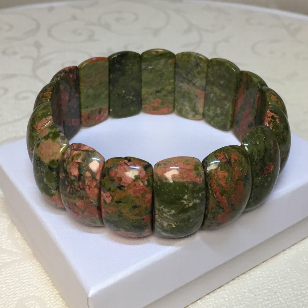 Браслет женский из камней Яшма унакит. Женский браслет глидерный из натуральных камней 25х12мм информация: