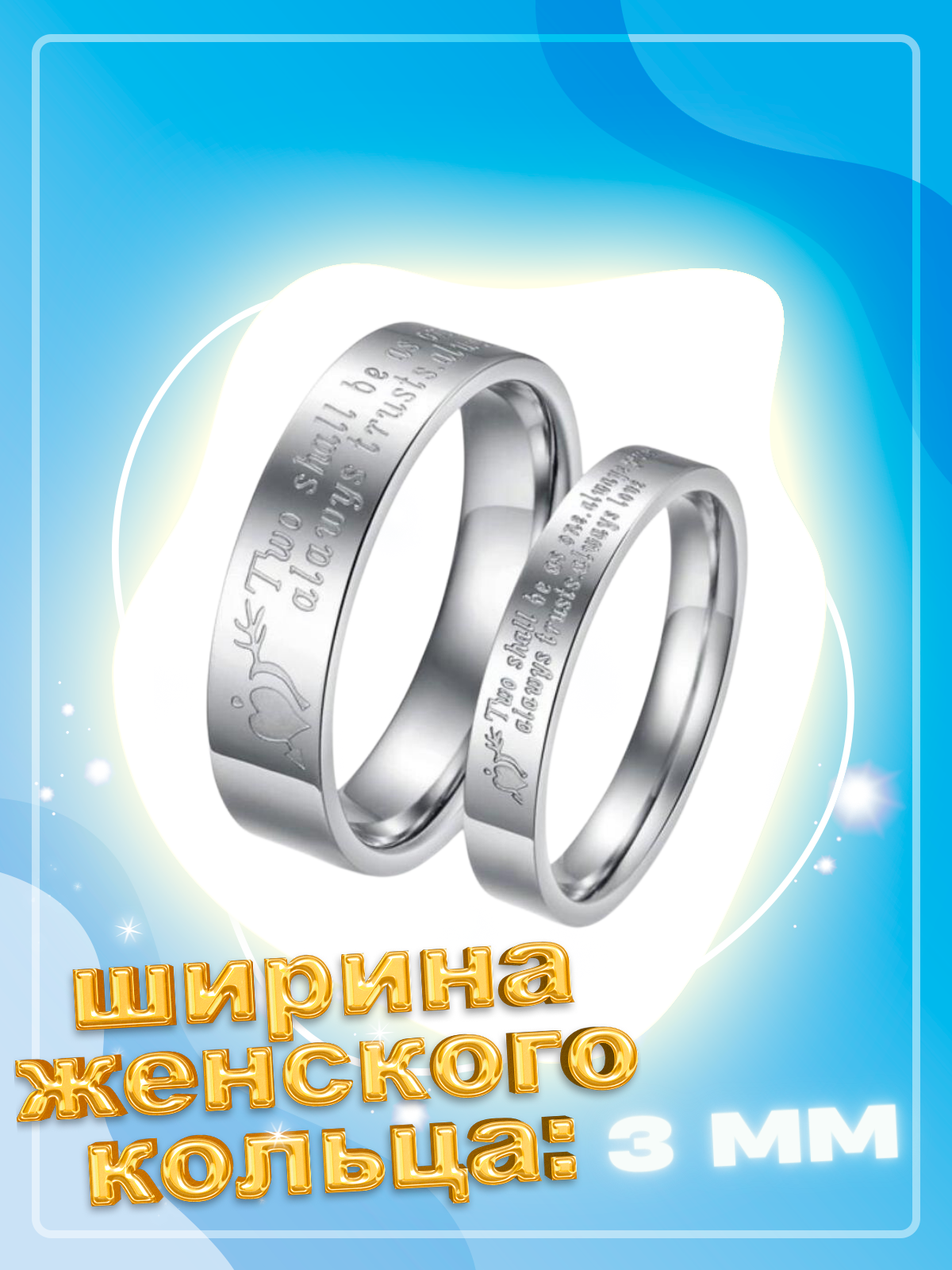 Одинаковые кольца под серебро с гравировкой / размер 16,5 / женское кольцо (3 мм) информация: