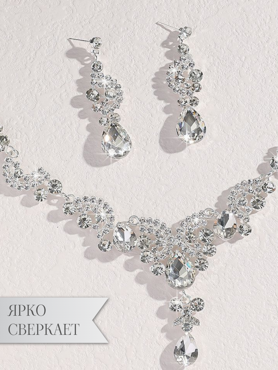10 цен на Комплект бижутерии женский свадебный с крупными стразами