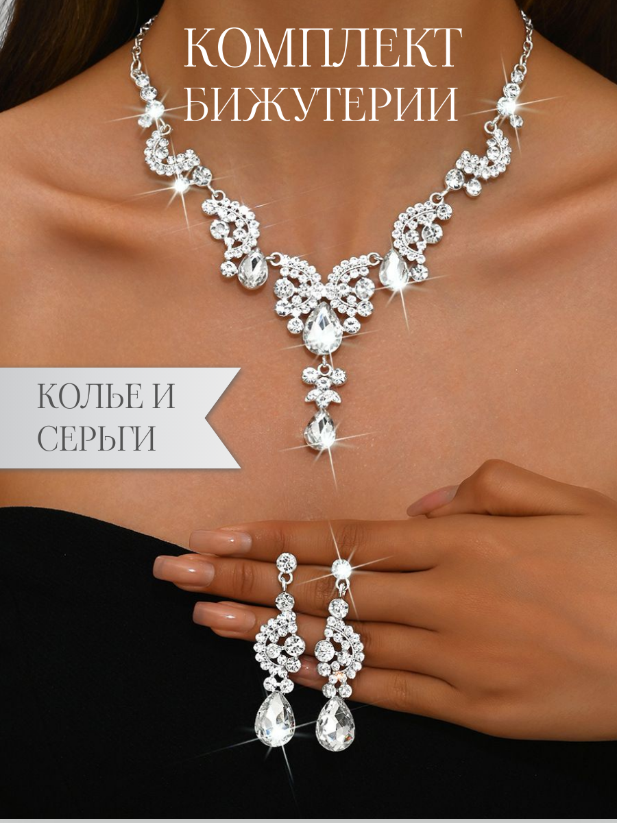 | Название модели | Комплект бижутерии с крупными стразами колье и серьги |