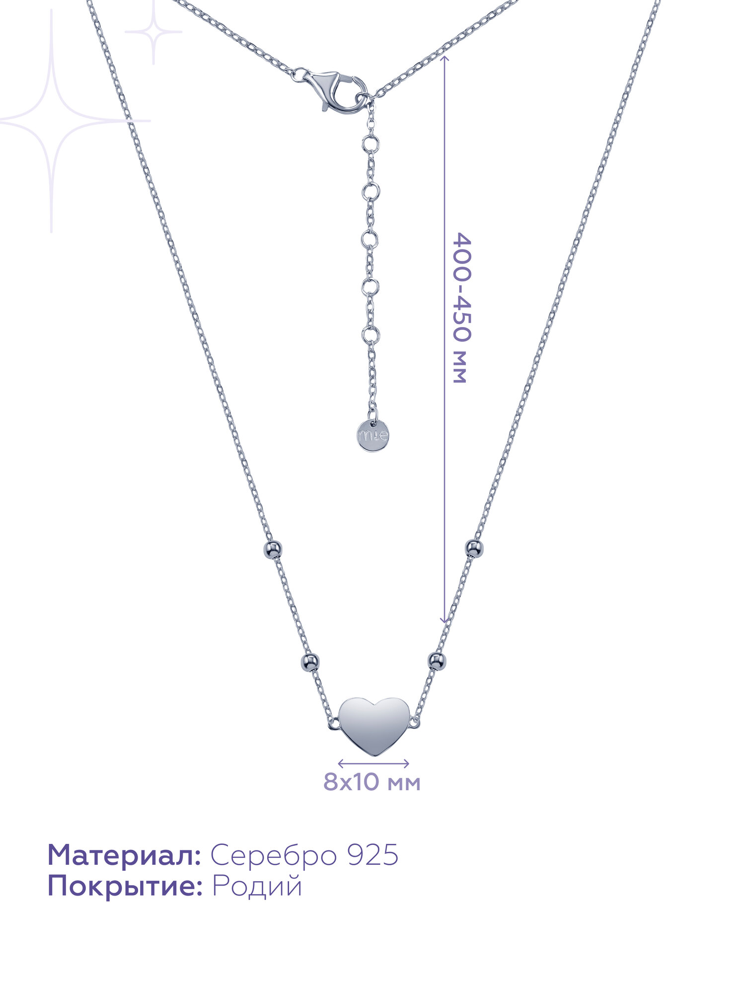 MIESTILO подвеска кулон колье серебряная подвеска подвеска на шею серебряный кулон сердце цепочка с подвеской серебряное колье информация: