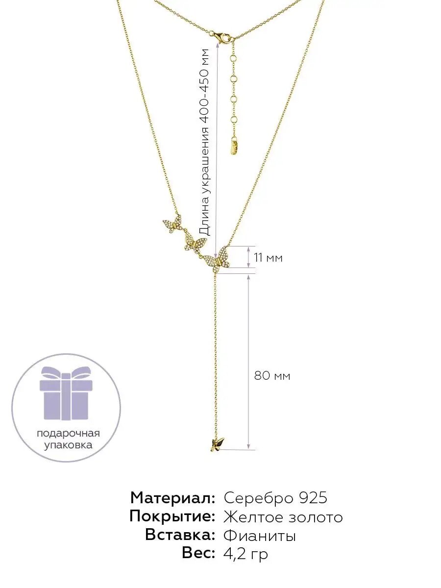 Колье-галстук серебро 925 серебряная бабочка ювелирная информация:
