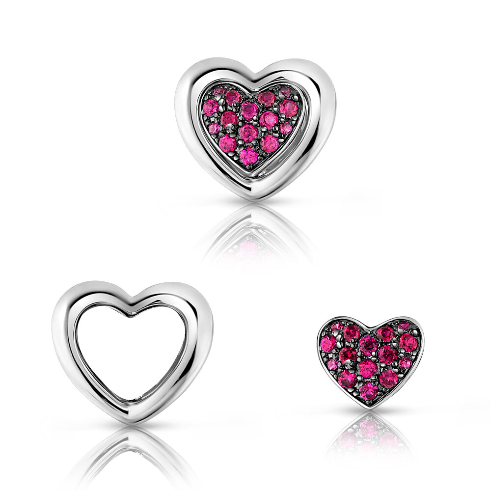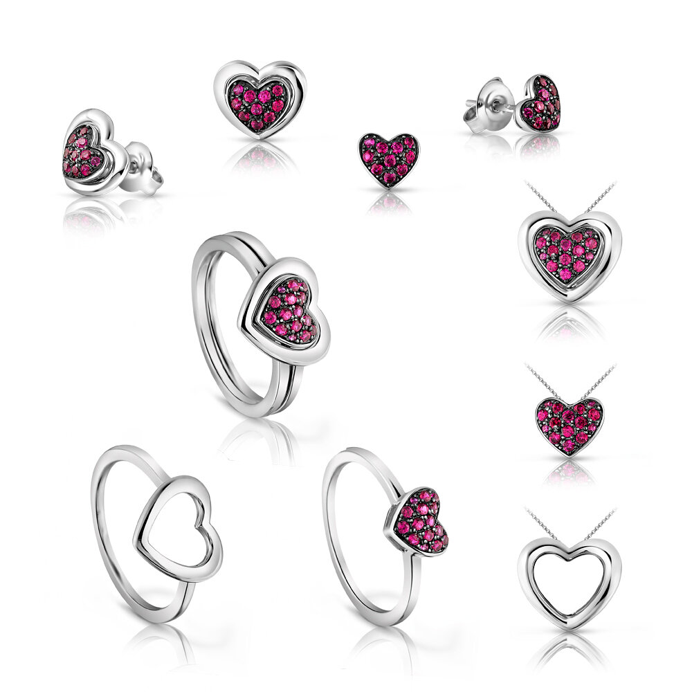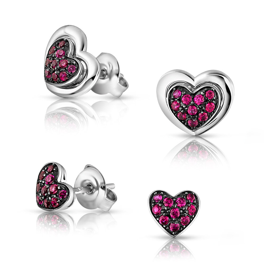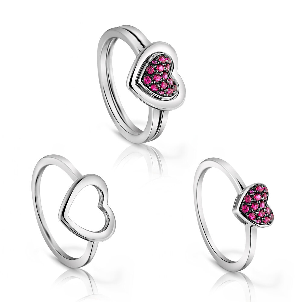 Комплект украшений кольцо, серьги и подвеска с натуральными рубинами и фианитами, серебро 925 пробы