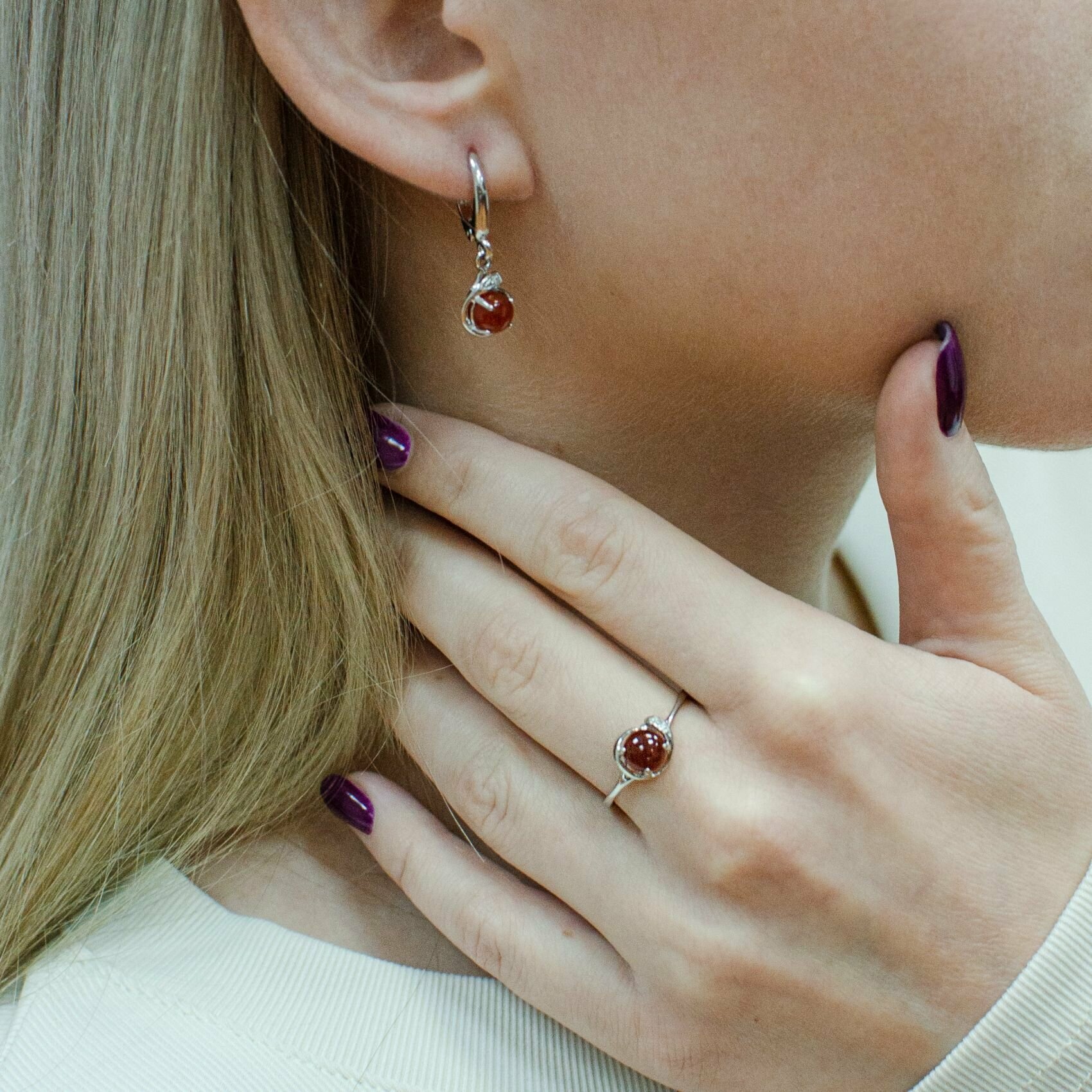 10 цен на Сереброника, серьги и кольцо с сердоликом и белым фианитом из серебра 925 пробы