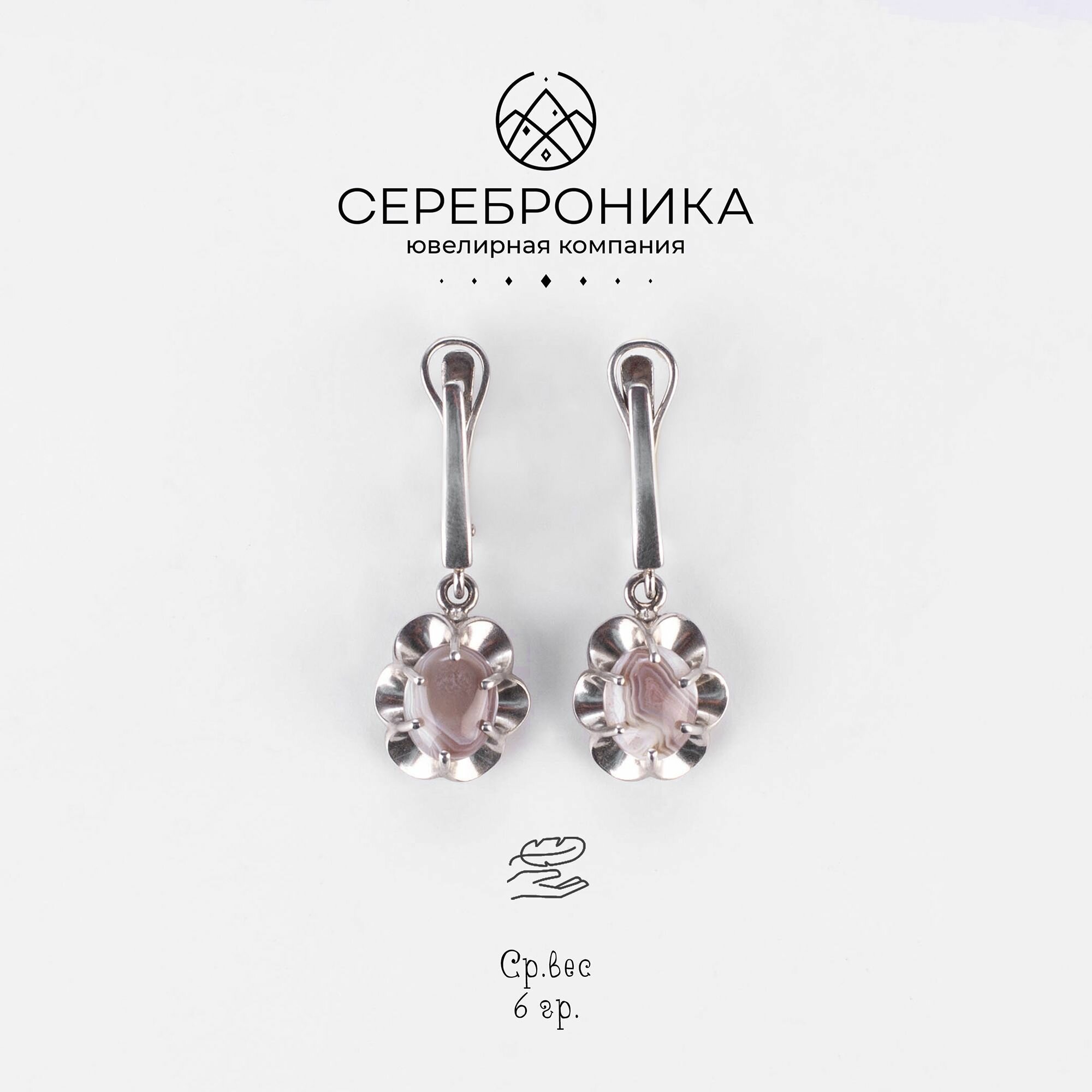 Отзывы на Сереброника, комплект серьги и кольцо из серебра 925 пробы с натуральным морским агатом