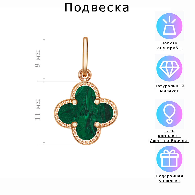 Отзывы на Подвеска золотая с малахитом Ван Клифф/Клевер 585 пробы из красного золота