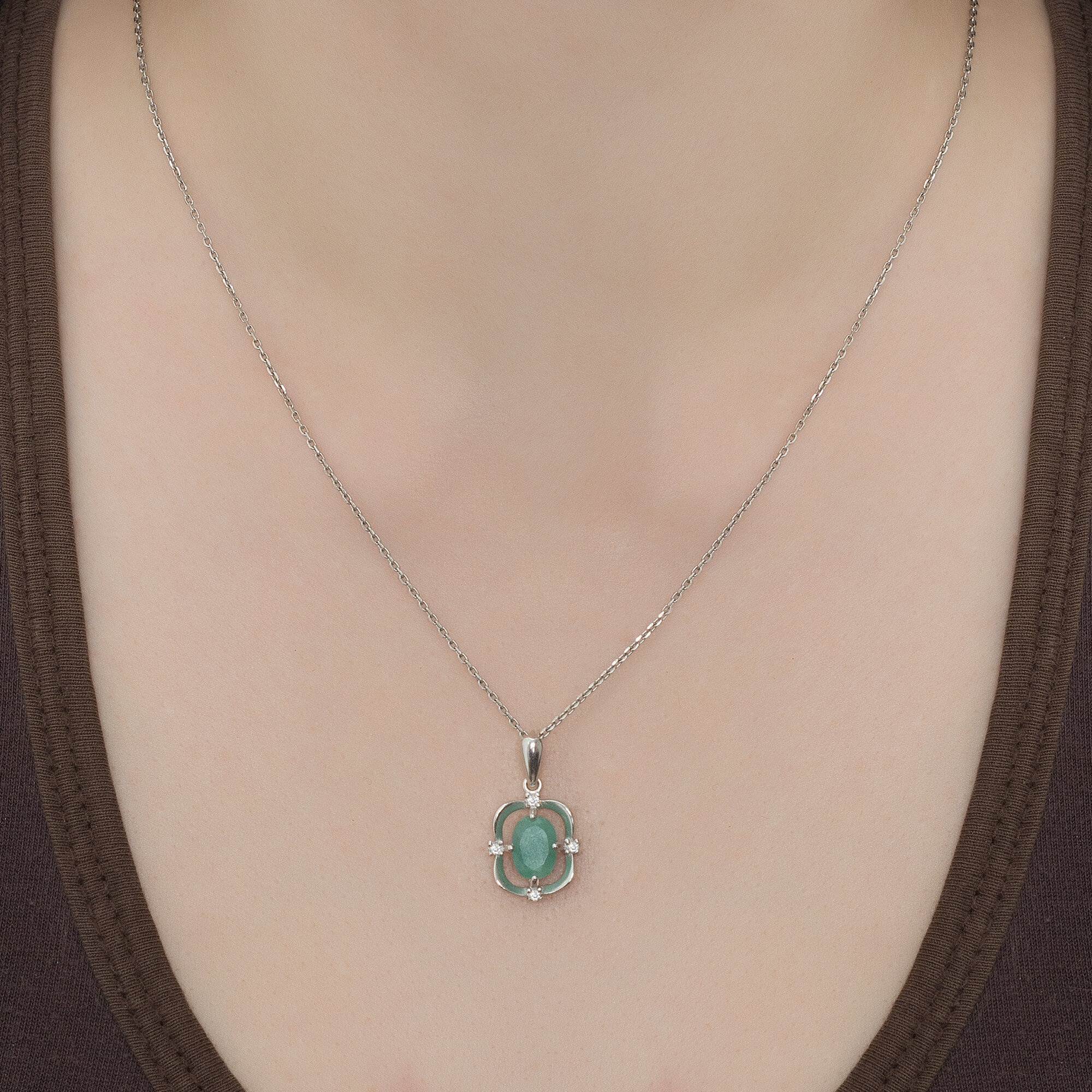 10 цен на Подвеска с натуральным изумрудом и фианитами, серебро 925 пробы