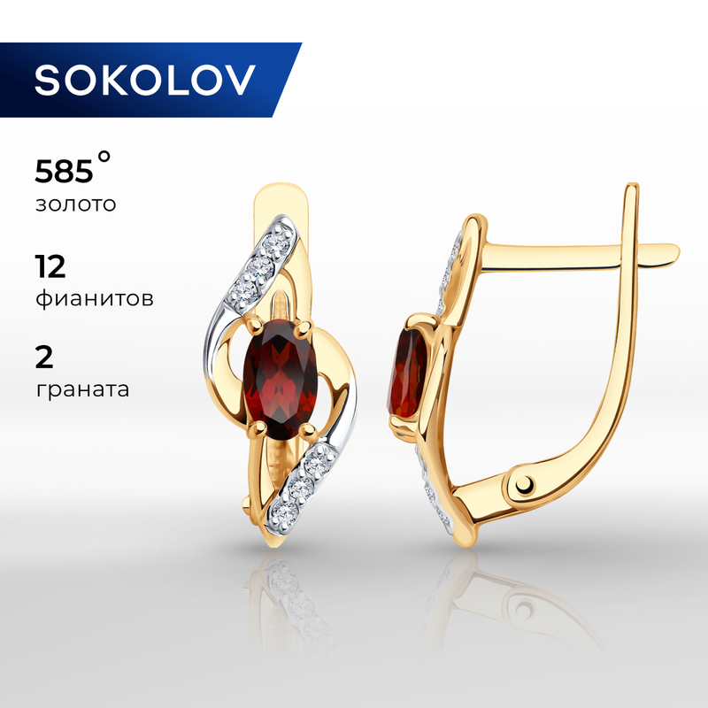 Серьги SOKOLOV из золота с гранатами и фианитами 728331 информация: