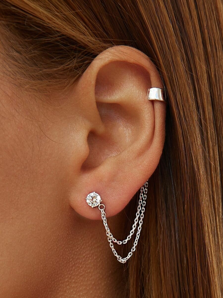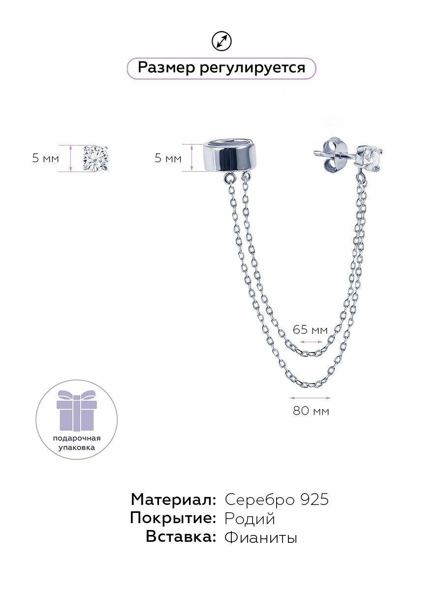 Моносерьга MIESTILO серебро 925, одиночная серьга кафф с цепочкой 2 695 ₽