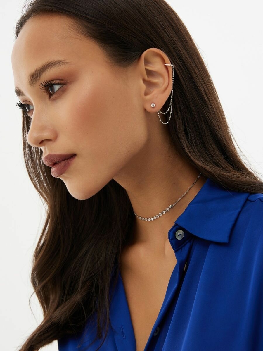 Серьга MIESTILO кафф на длинной цепочке серебро 925 без прокола 1 342 ₽